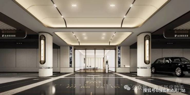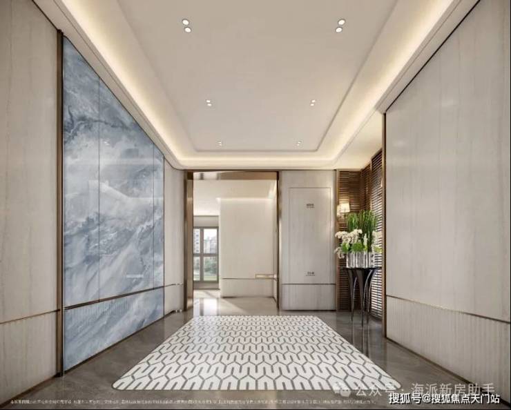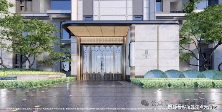 酒店式门廊作为归家的第一道风景,招商臻境以空间大尺度与高级奢石的材质使用将尊崇的归家礼遇感拉满。近50米宽,高度约5■.3米高,开口约11米长的高规格酒店式大门。选用了贝金米黄石材作为墙面主材=★,墙裙用印度蓝石材做装饰。两侧甄选了两颗名贵的罗汉松,有着恭迎归家的美好寓意◁。