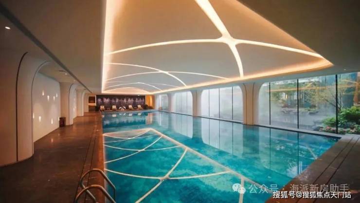 恒温泳池约500㎡艺术馆般泳池◆,天花、墙面以现代摩登的手法,抽取上海海派建筑造型为元素,打造充满静奢韵律的造型,搭配泳道尽端景泰蓝奢石背景墙,勾勒出一处臻享静美的精神之所▲●•。